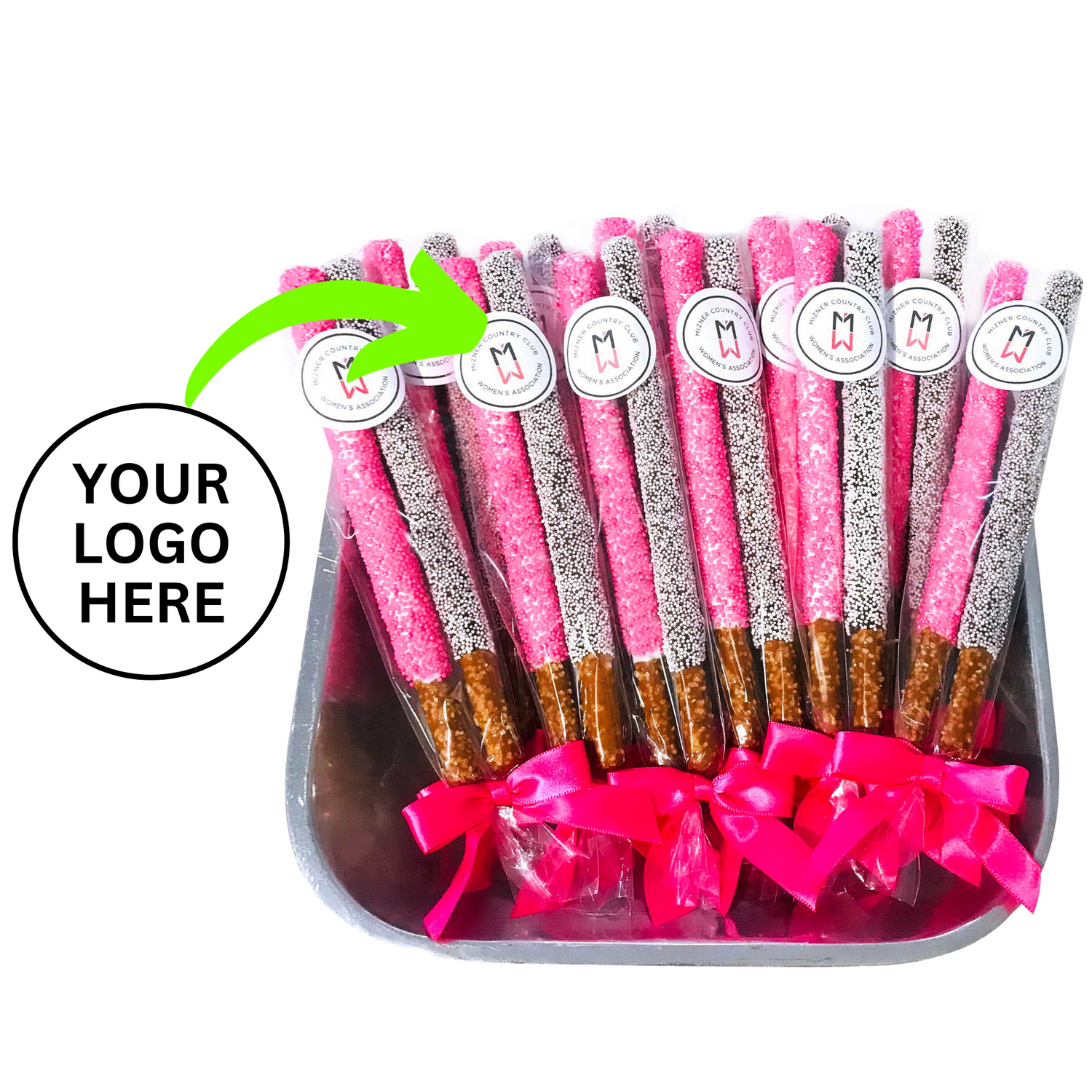 Baby Shower Chocolate Pretzel Rods - Girl (BRIGHT Pink & White)