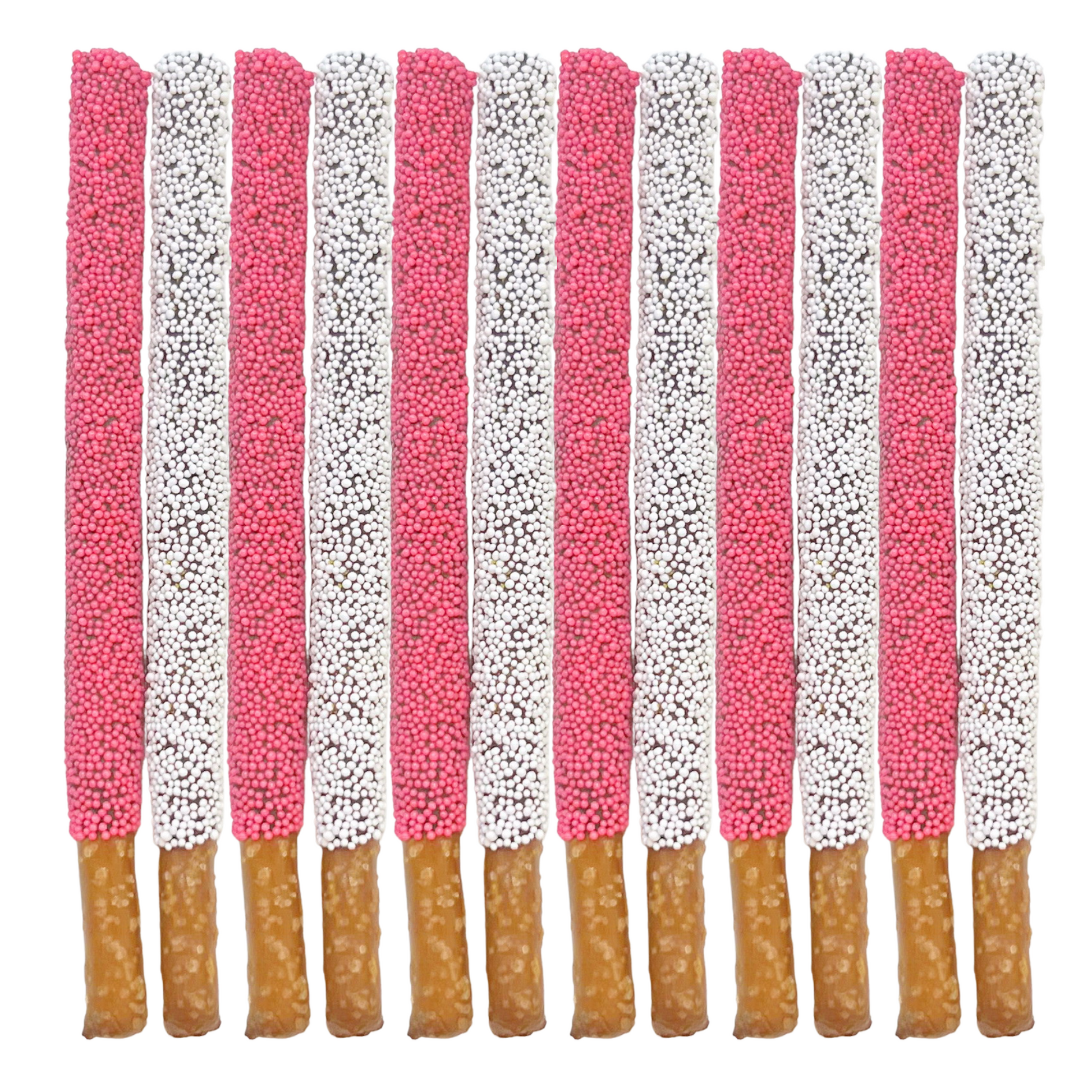1 Order = 1 Dozen Pretzel Rods (6 Bright Pink and 6 White)