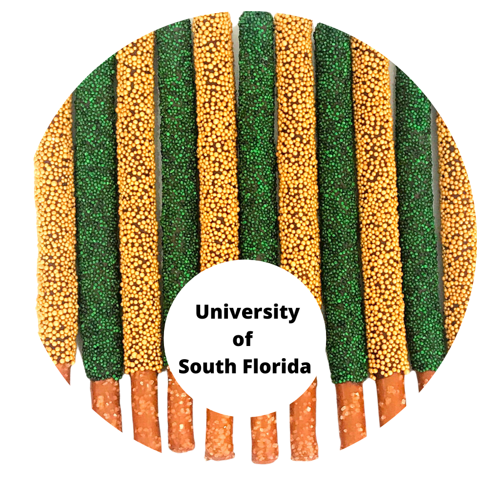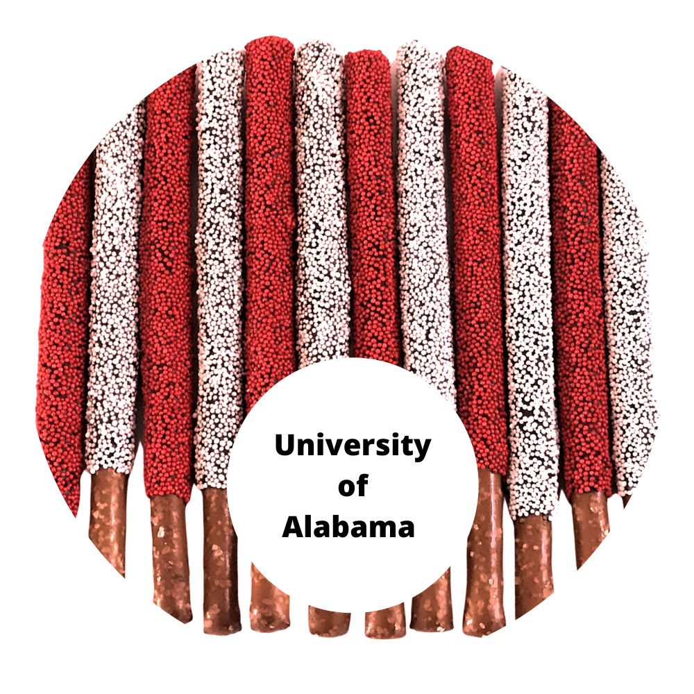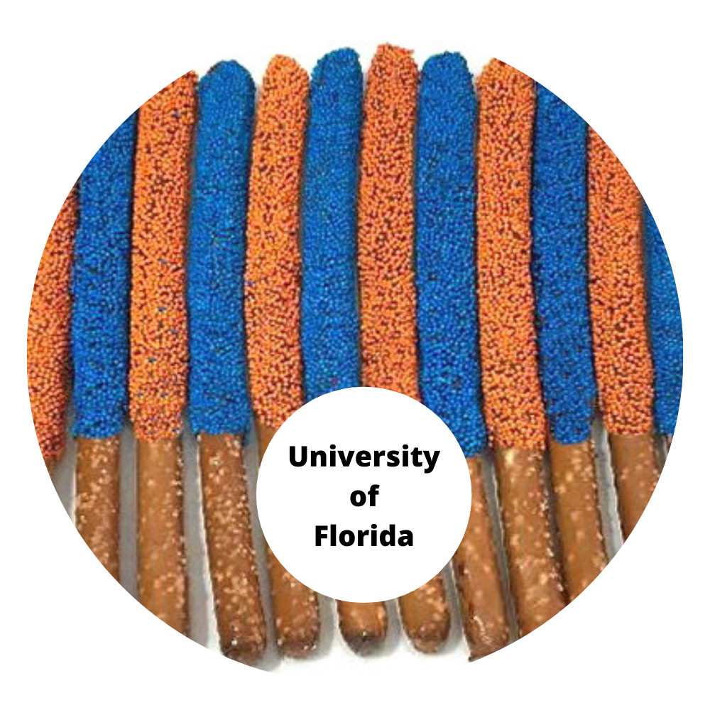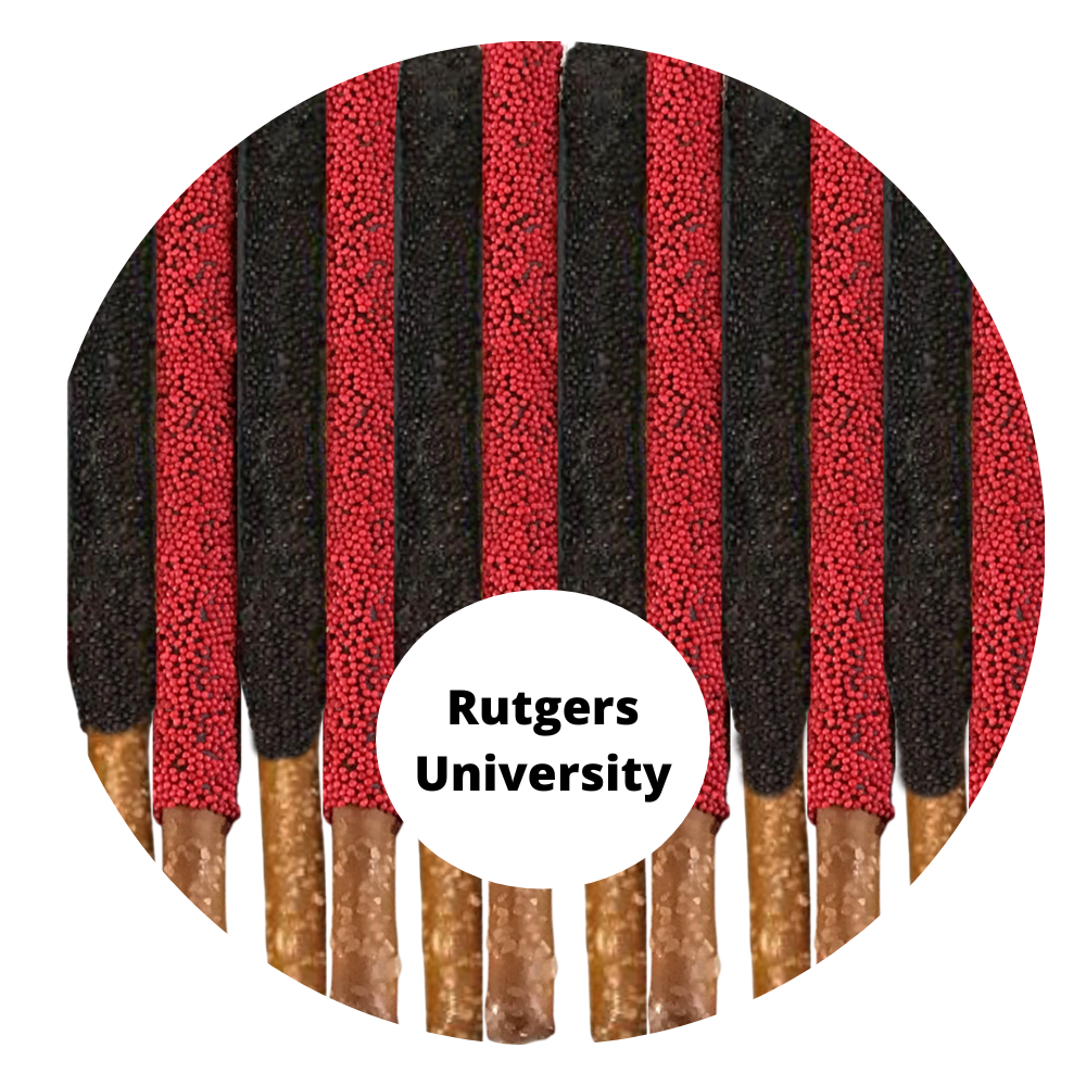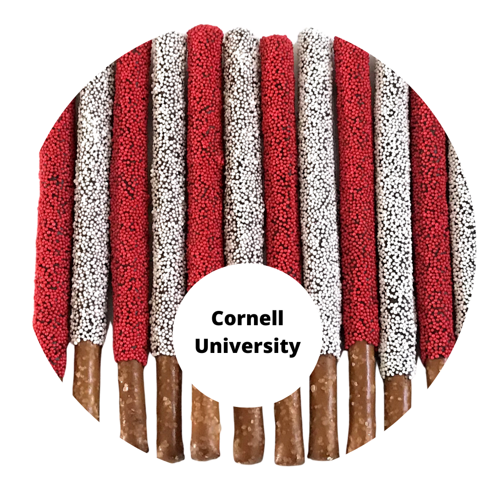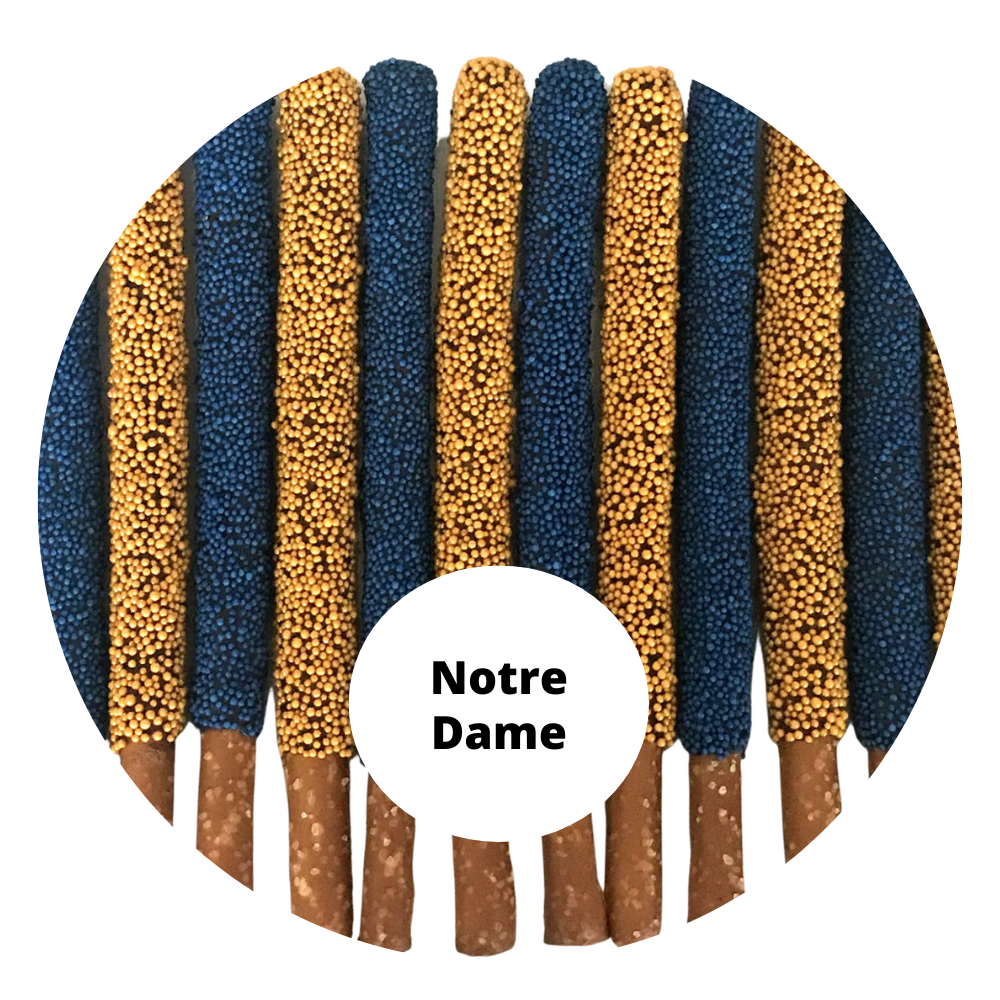 - 1/2 Dozen Chocolate Covered Pretzel Rods: Three 2-Packs (as shown). Topped with college colored sprinkles.