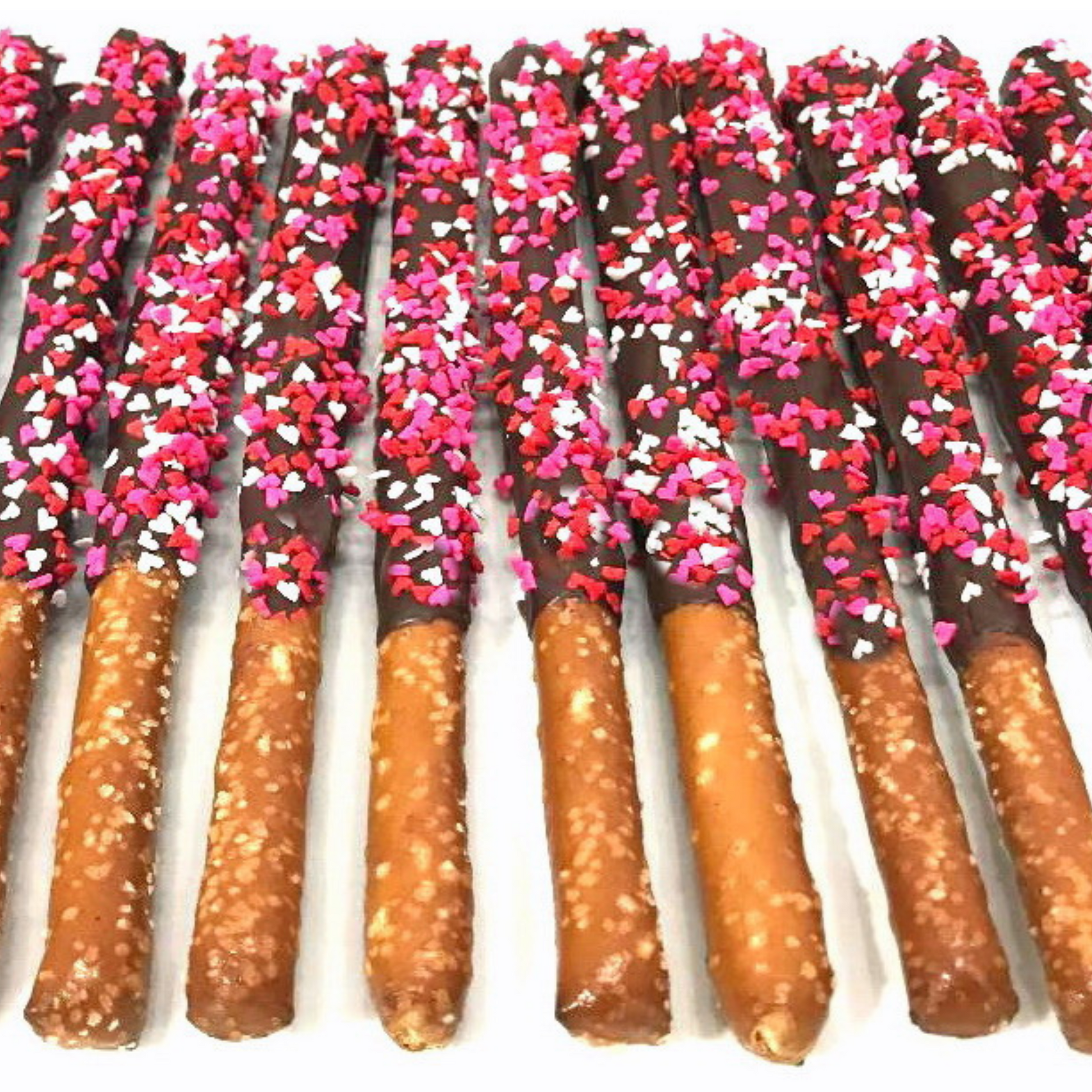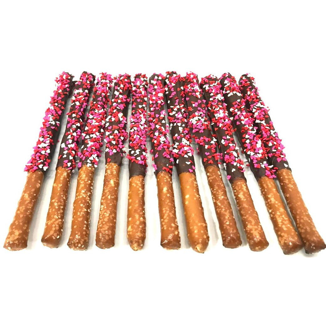 Mother's Day Chocolate Pretzel Rods with Heart Sprinkles