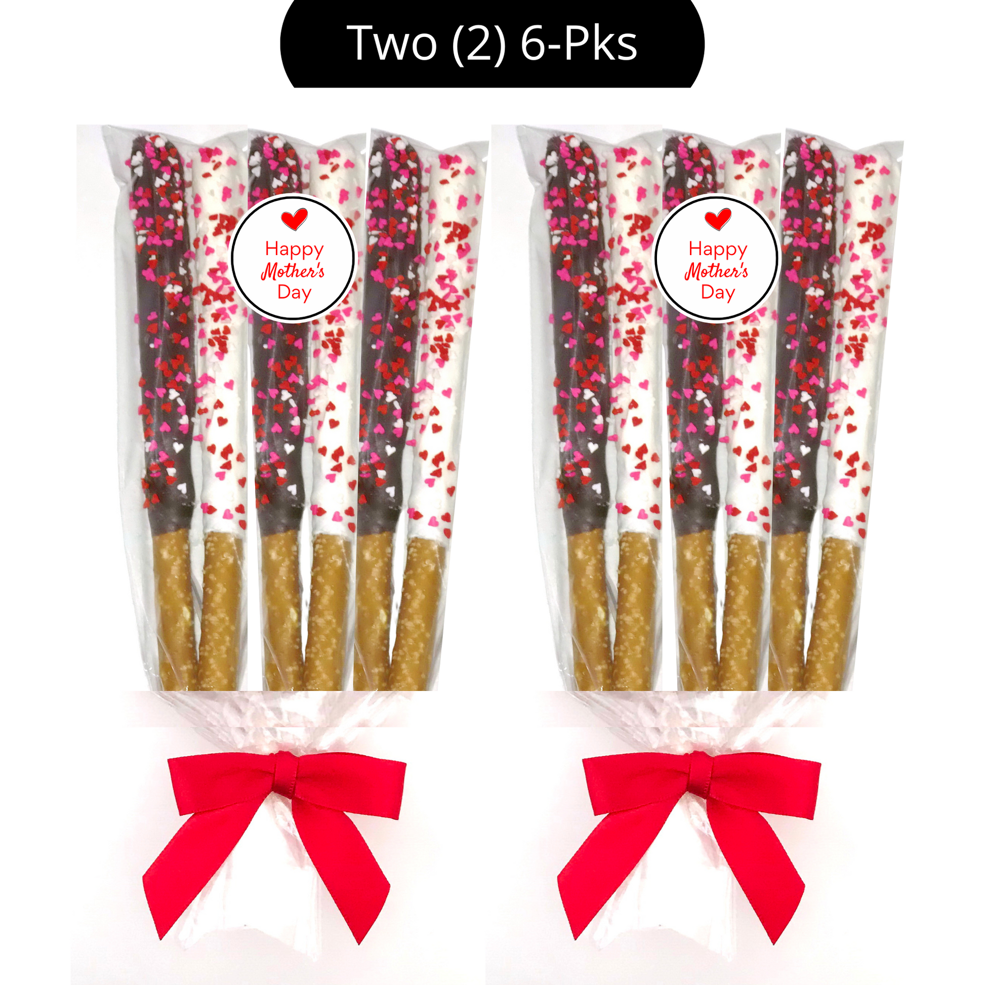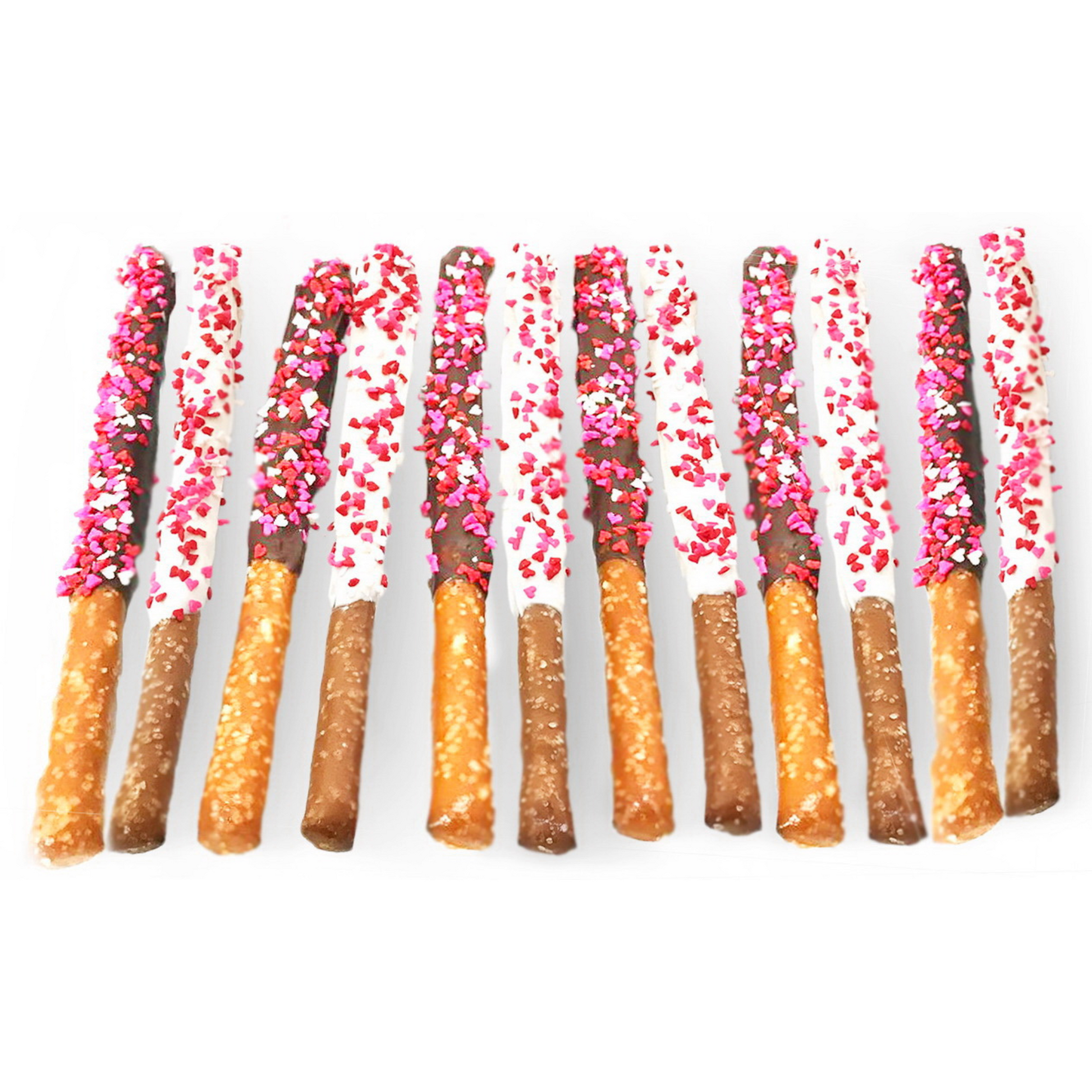 Mother's Day Chocolate Pretzel Rods with Heart Sprinkles - Mixed Flavors