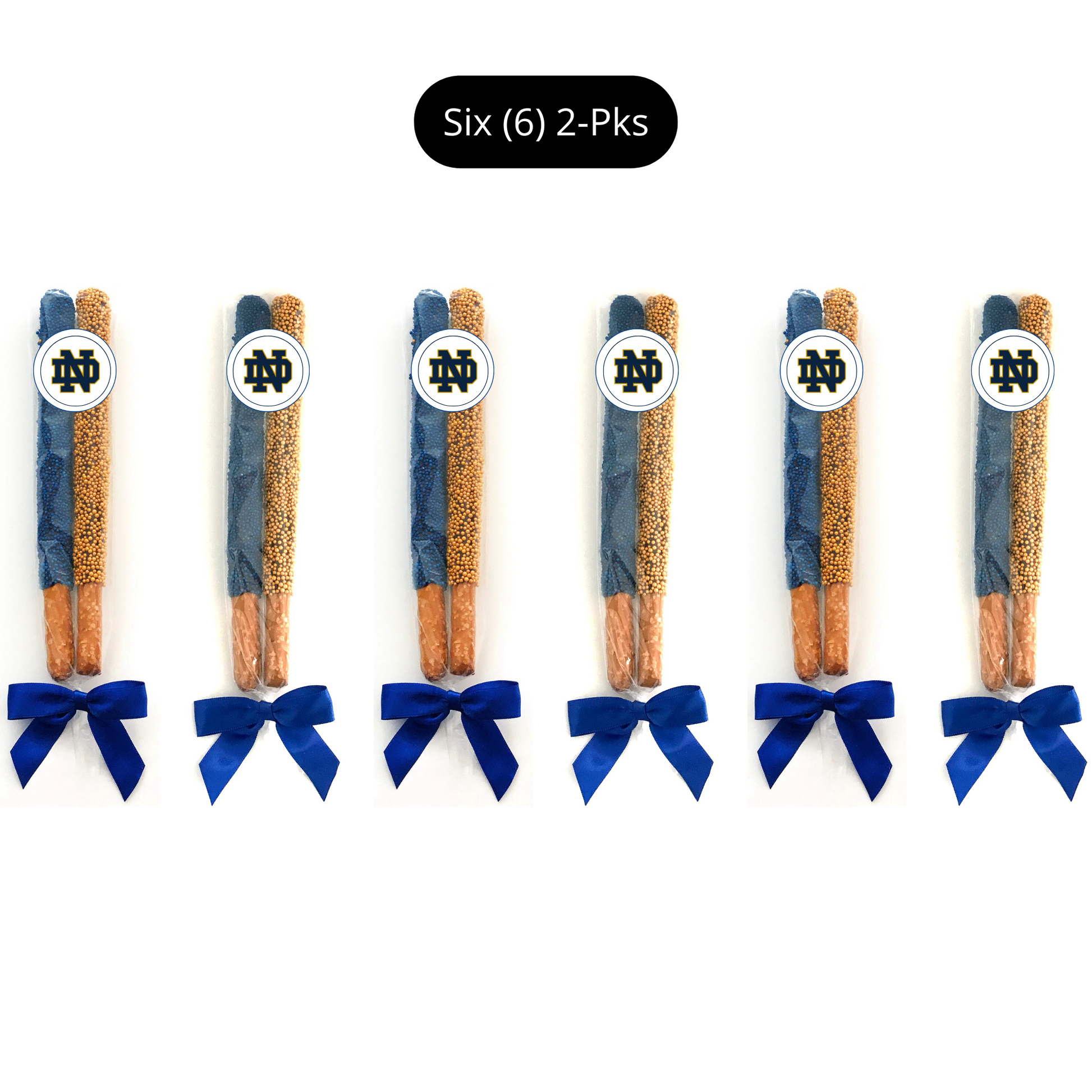 GO FIGHTING IRISH! These yummy chocolate pretzel rods are topped with University of Notre Dame colored sprinkles. These are the perfect sweet and salty treat and make a wonderful college care package/gift for exams, graduation, any time, birthdays, sorority/fraternity gift, for a Notre Dame alumni, or any Notre Dame fan. Each order is beautifully packaged. (Exact packaging may vary based on packaging product availability.)