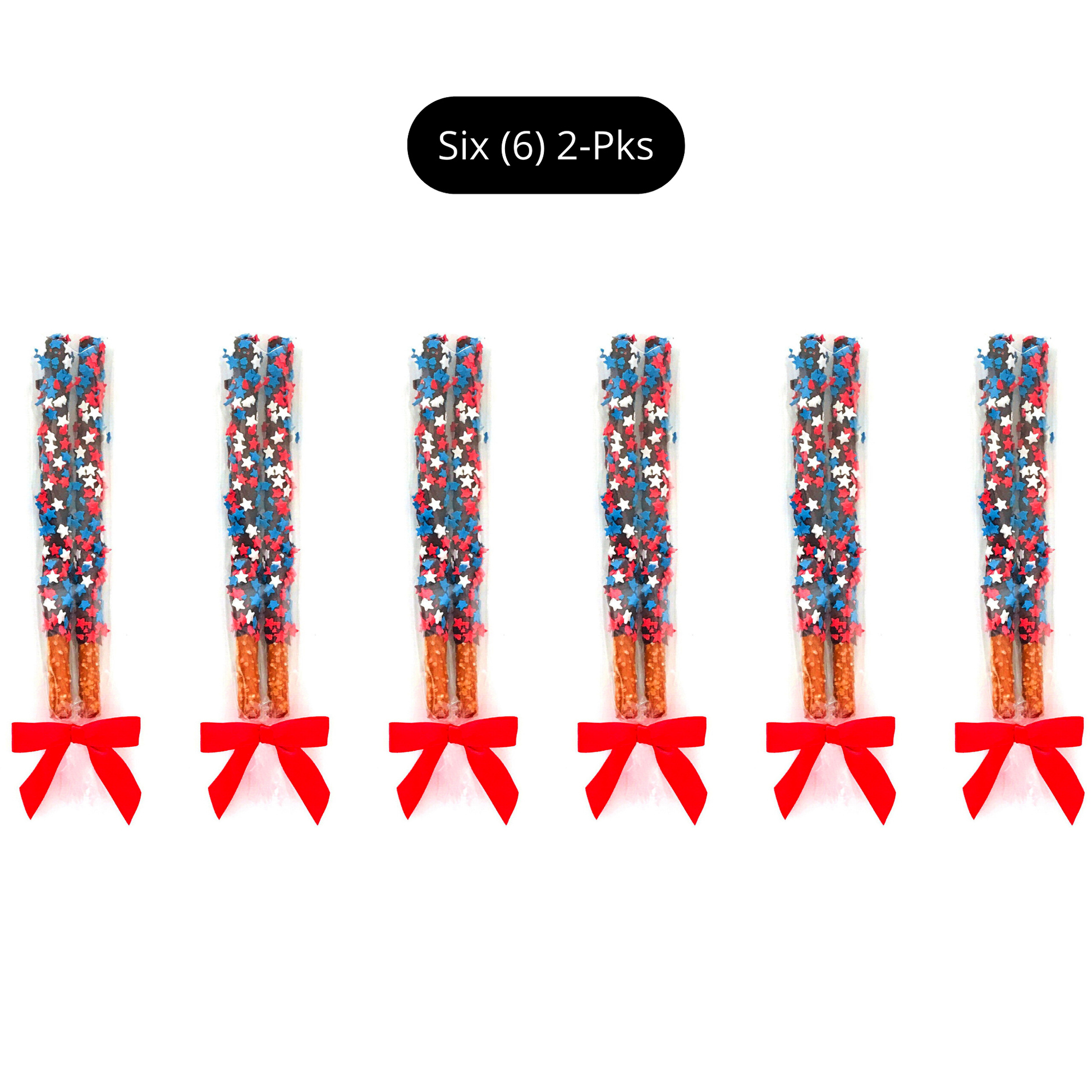 Patriotic Chocolate Covered Pretzel Rods - Topped With Red, White, & Blue Stars