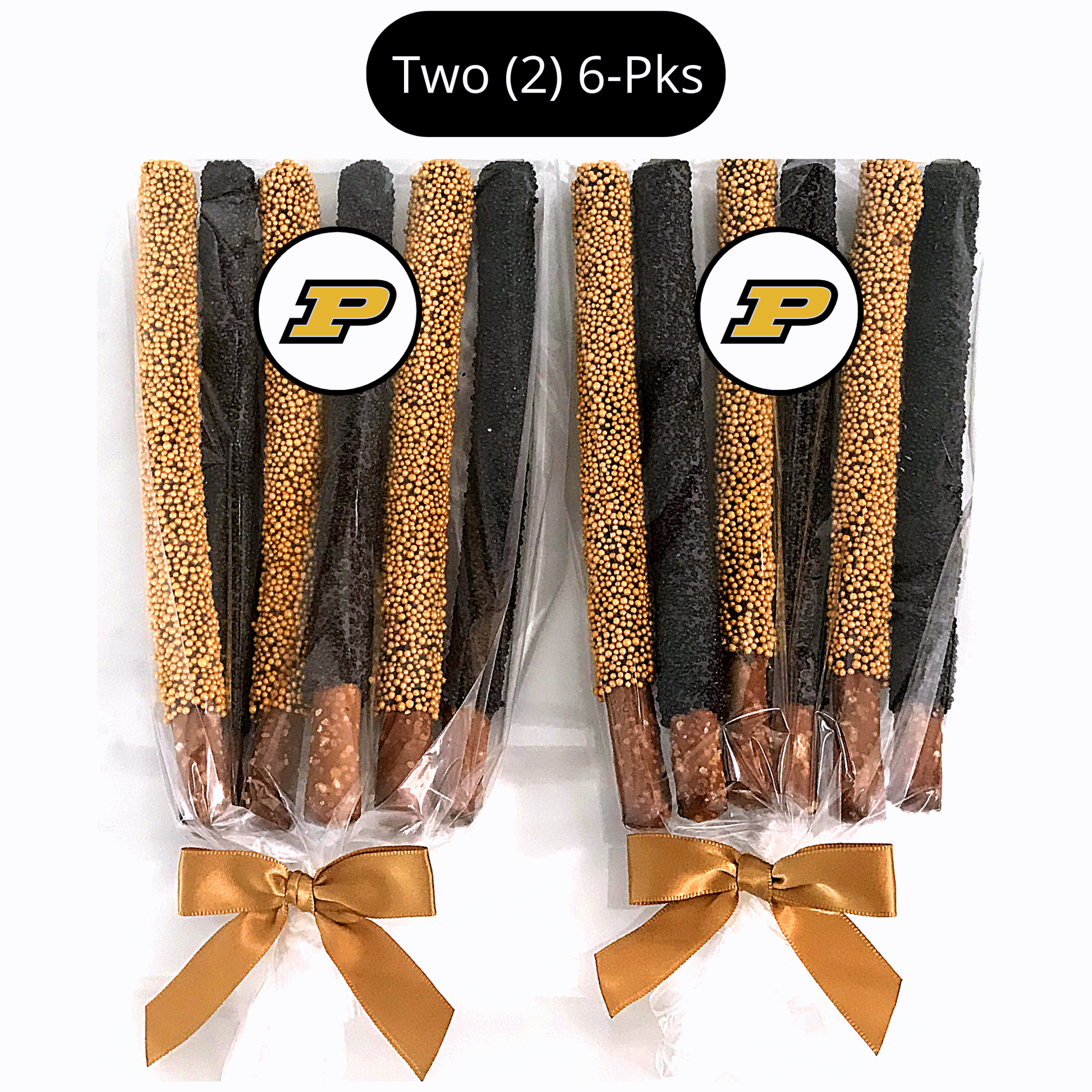 BOILER UP! These yummy chocolate pretzel rods are topped with Purdue University colored sprinkles. These are the perfect sweet and salty treat and make a wonderful college acceptance gift, college care package, gift for exams, graduation, any time, birthdays, sorority/fraternity gift, for a Purdue alumni, or any Purdue fan. Each order is beautifully packaged. (Exact packaging may vary based on packaging product availability.)