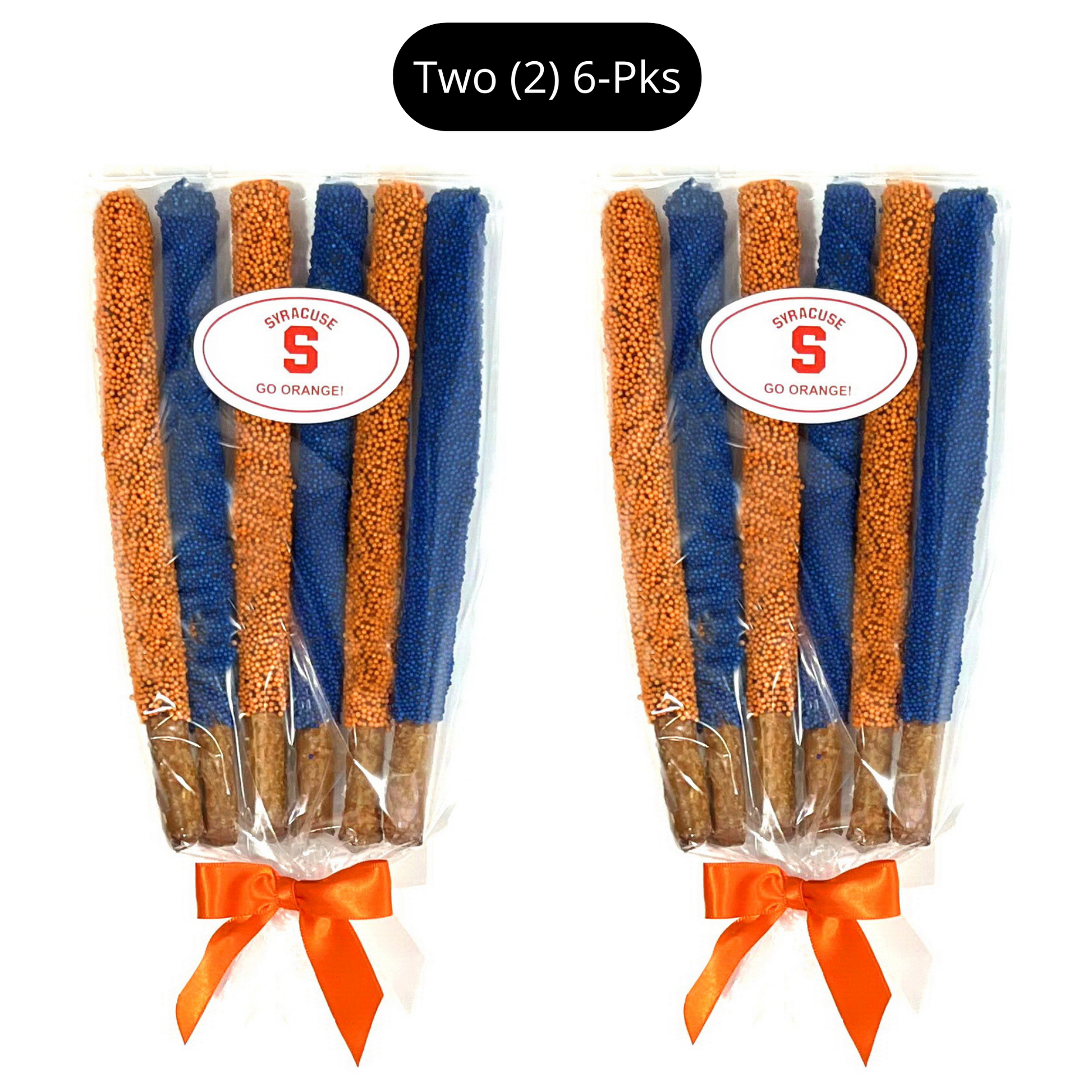 GO ORANGE! These yummy chocolate pretzel rods are topped with Syracuse University colored sprinkles. These are the perfect sweet and salty treat and make a wonderful college acceptance gift, college care package, gift for exams, graduation, any time, birthdays, sorority/fraternity gift, for a Syracuse alumni, or any Syracuse fan. Each order is beautifully packaged. (Exact packaging may vary based on availability.)