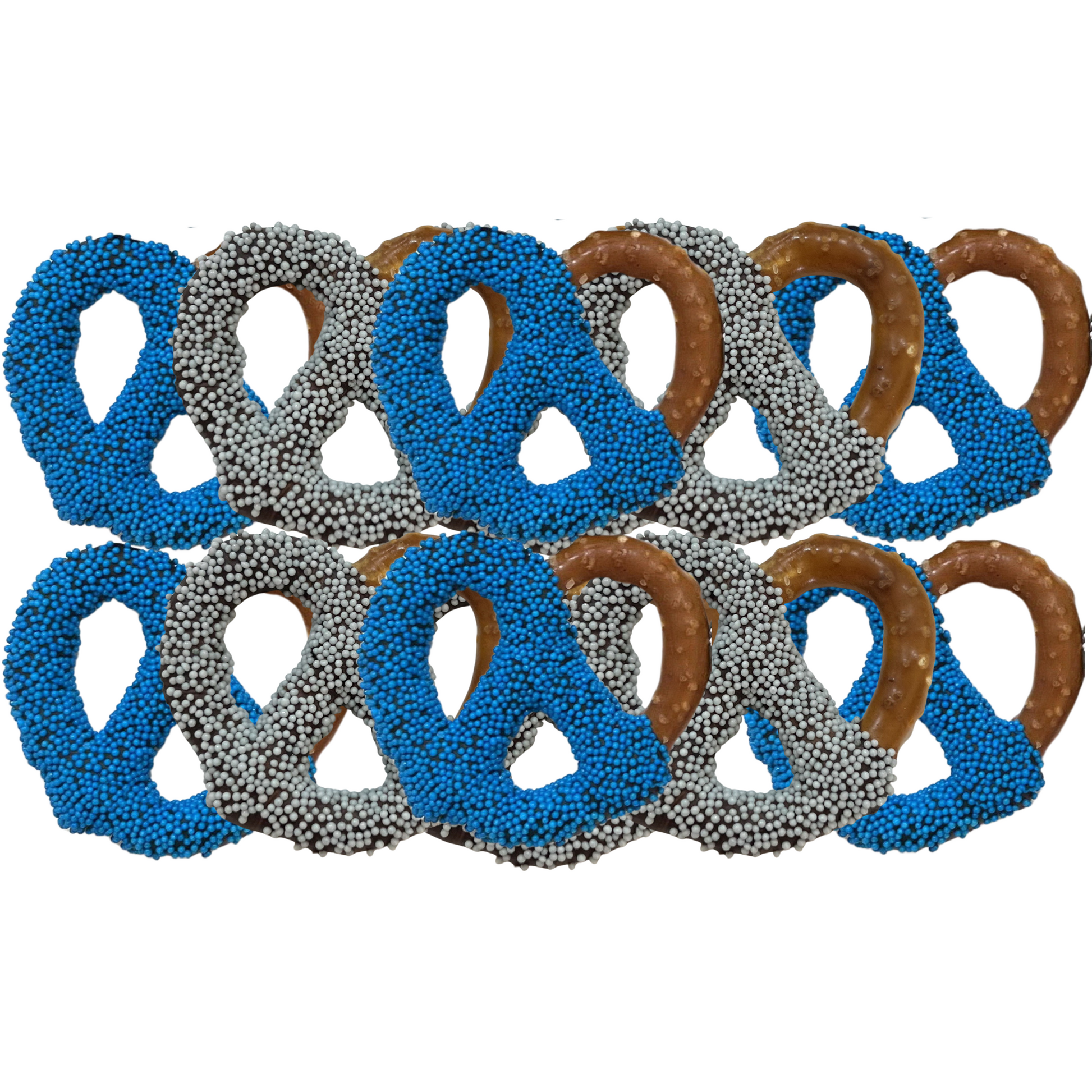 GO OSPREYS! These yummy large 3" pretzels are dipped in chocolate and topped with University of North Florida colored sprinkles. These are the perfect sweet and salty treat and make a wonderful college acceptance gift, college care package, gift for exams, graduation, any time, birthdays, sorority/fraternity gift, for a UNF alumni, or any UNF fan. Each order is beautifully packaged. (Exact packaging/bows may vary based on availability.)