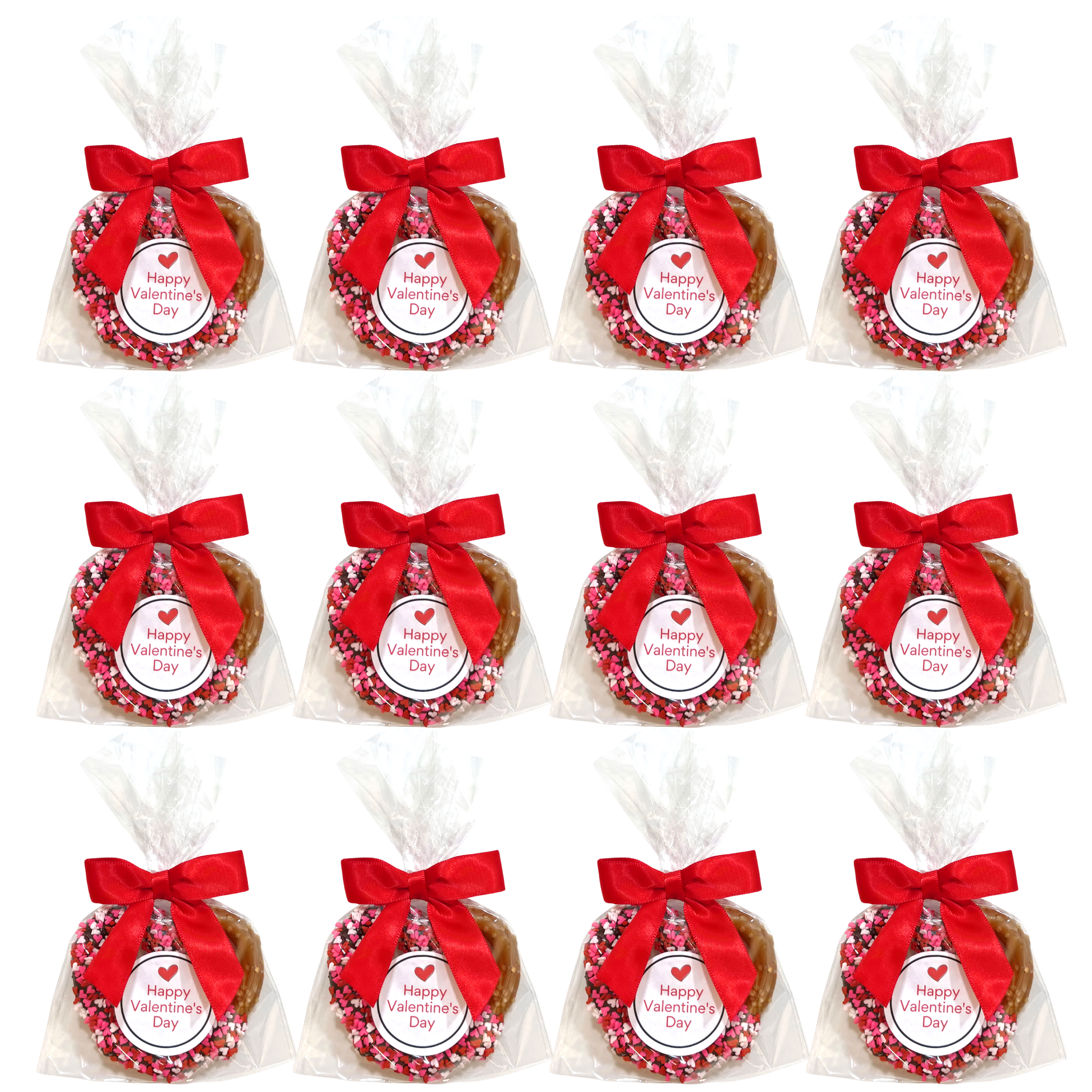 💕Delicious Valentine's Day large 3" pretzels are dipped in chocolate and topped with tiny edible heart sprinkles for a loving, sweet and salty holiday treat. Beautifully packaged and ready to gift to someone special. Exact toppings and packaging may vary based on availability.
